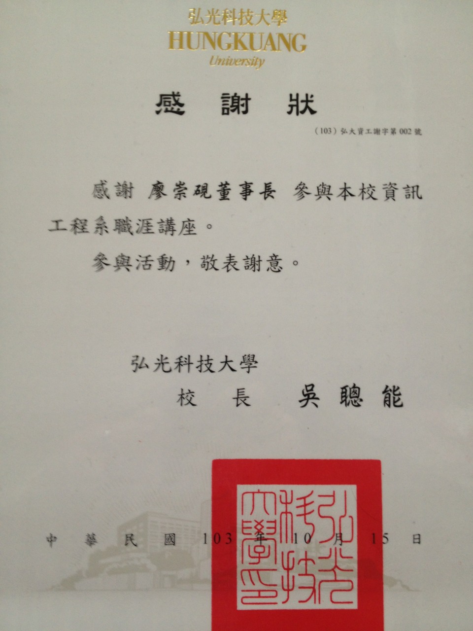 勝宏集團-廖董事長,受邀至弘光科技大學「職涯講座」演講