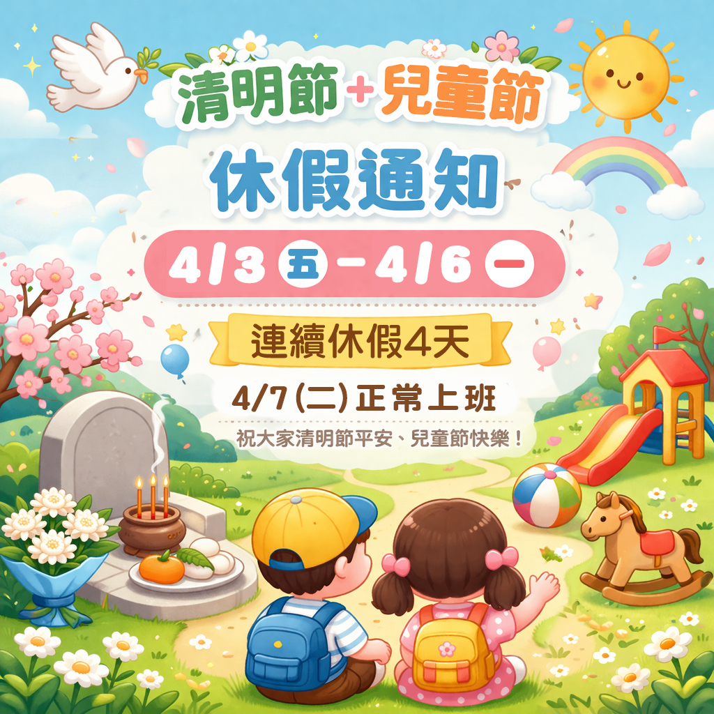 🌿【清明節 × 兒童節 連假公告】🌈